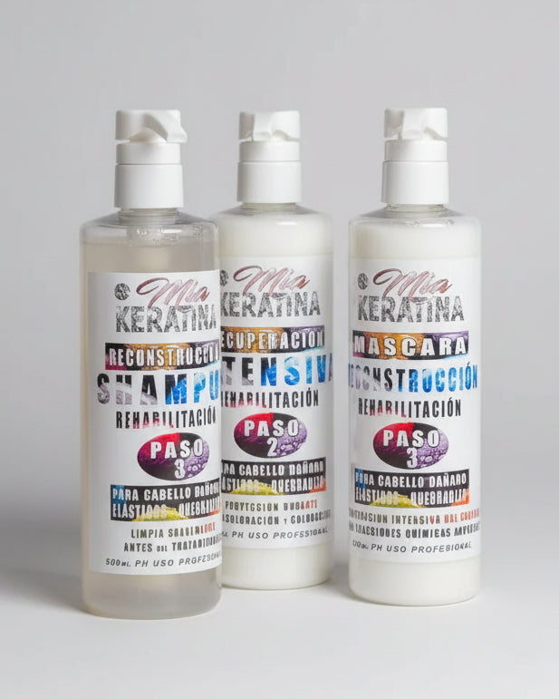 Diseñado especialmente para cabellos dañados, quebradizos y con elasticidad. Este kit de 3 productos trabaja directamente sobre la fibra capilar, ayudando a eliminar la elasticidad, fortalecer el cabello y recuperar su estructura de forma inmediata.